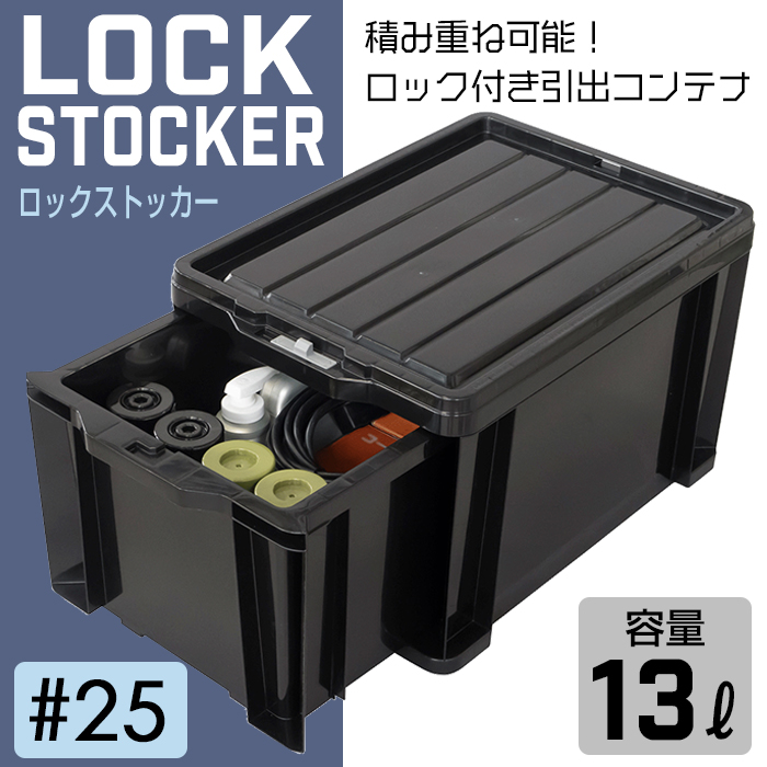引き出し手前には「飛び出し防止ロック」付、ボックス底面には積み重ね時の転倒防止用に「積み重ねロック」付で安心。
