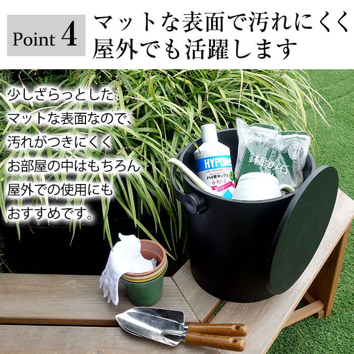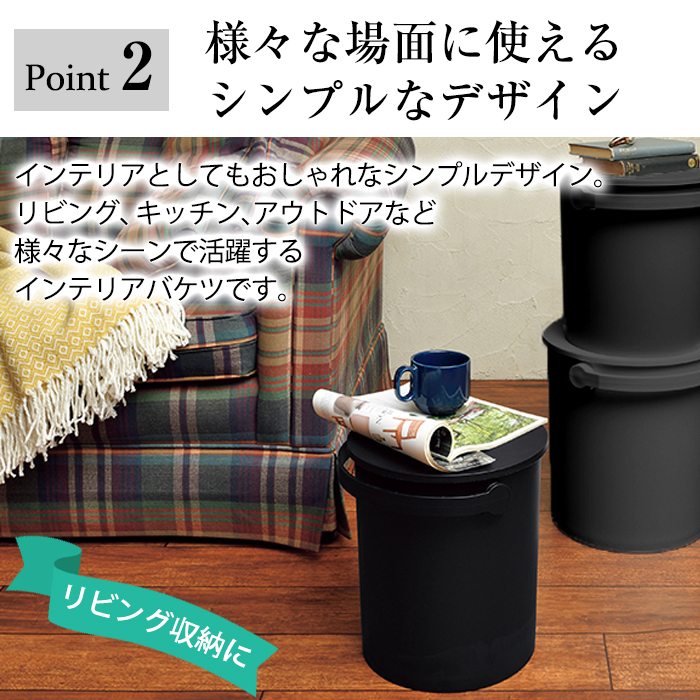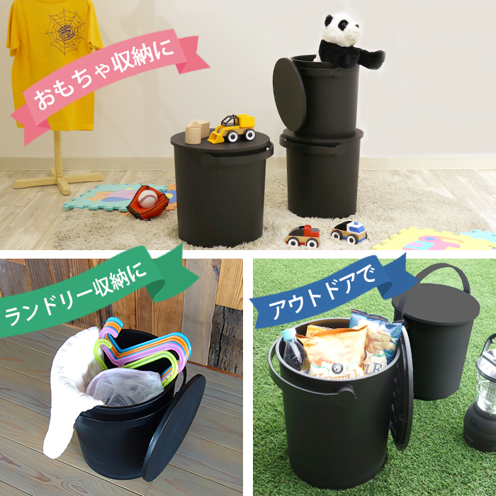 様々なシーンで活躍するフタ付きバケツ。