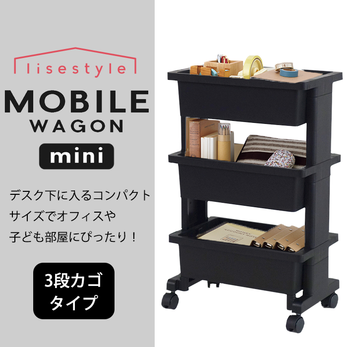 リセスタイル ワゴン ミニ 3段 キャスター付き ブラック
