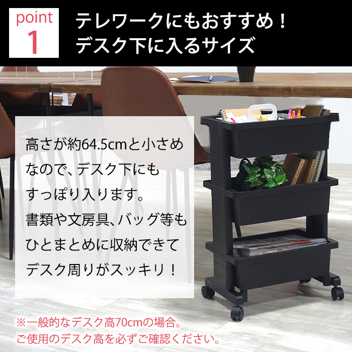 デスク下に入る!リセスタイル ワゴン ミニ 3段