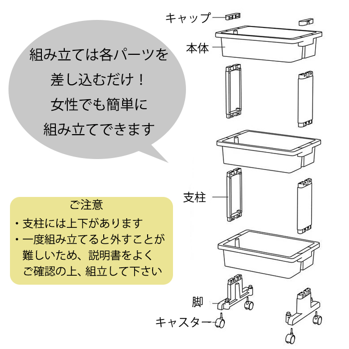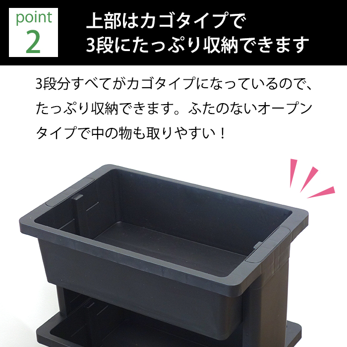 深さのあるカゴタイプの3段タイプでたっぷり収納できます。