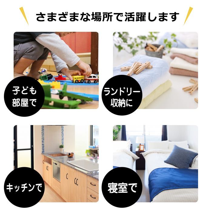 プラスチック製なので、洗面所やキッチンなど水回りでも活躍してくれます。