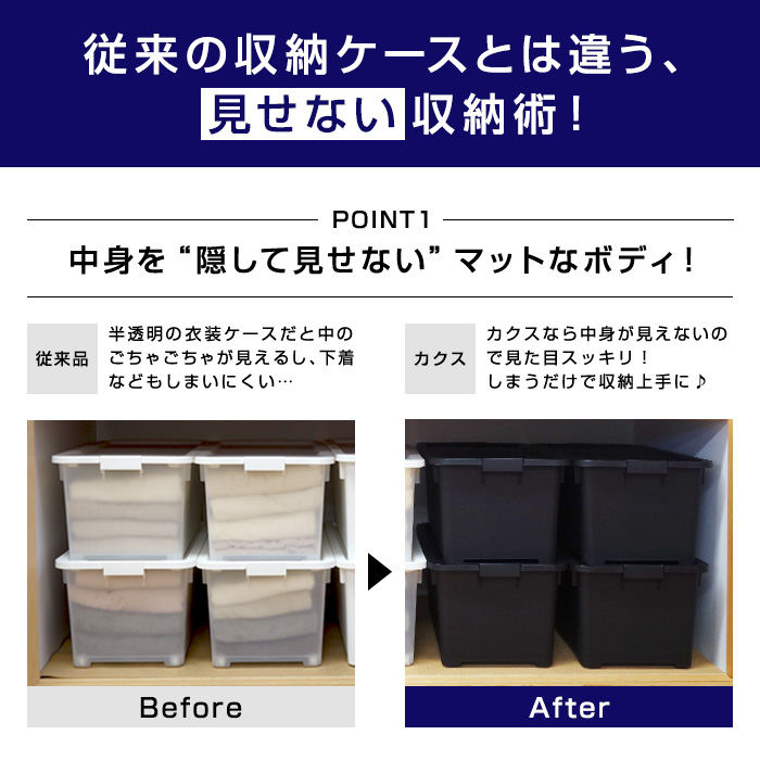 従来のクリアタイプの衣装ケースと異なり、