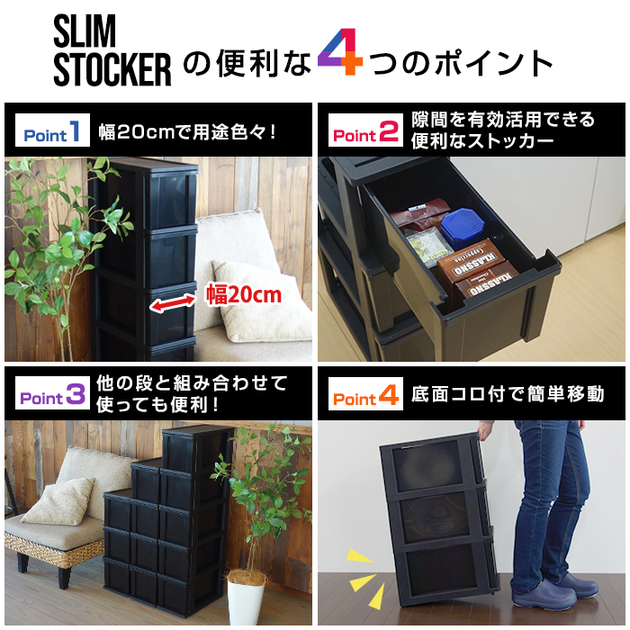隙間を有効活用!幅20cm スリムストッカー5段
