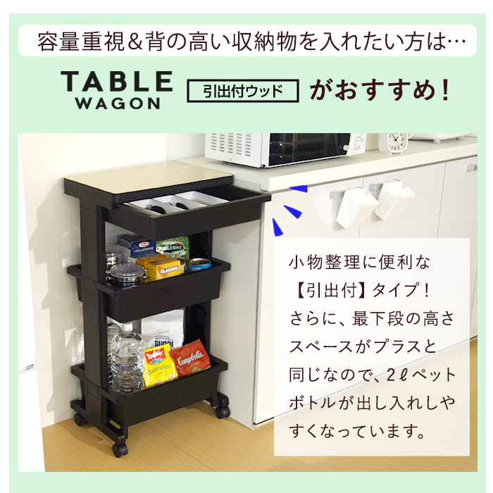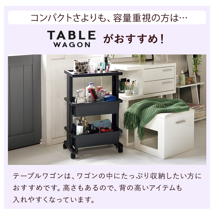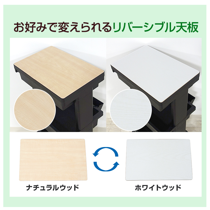 深さのあるカゴタイプの収納と物が置ける丈夫な天板で、収納の幅が広がる!