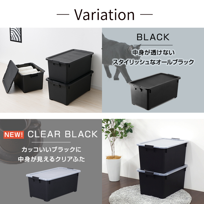 フタは透明なので上からは中身が確認できるクリアブラックの2タイプ。