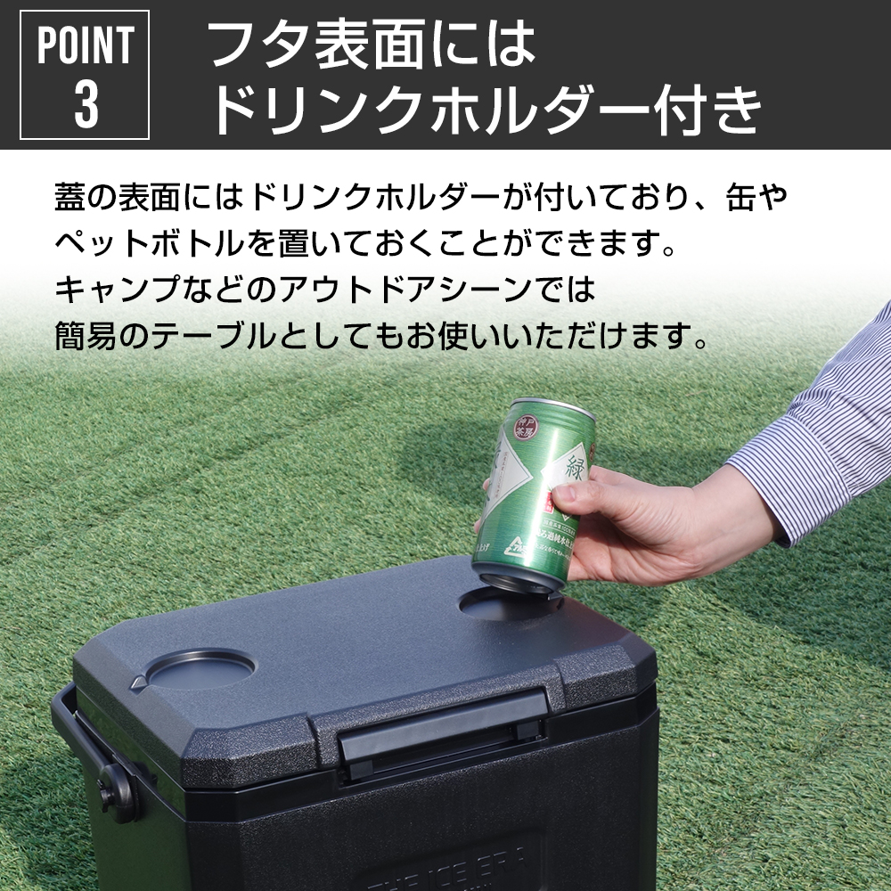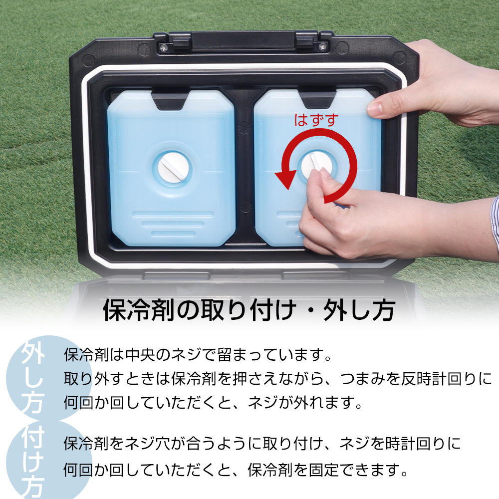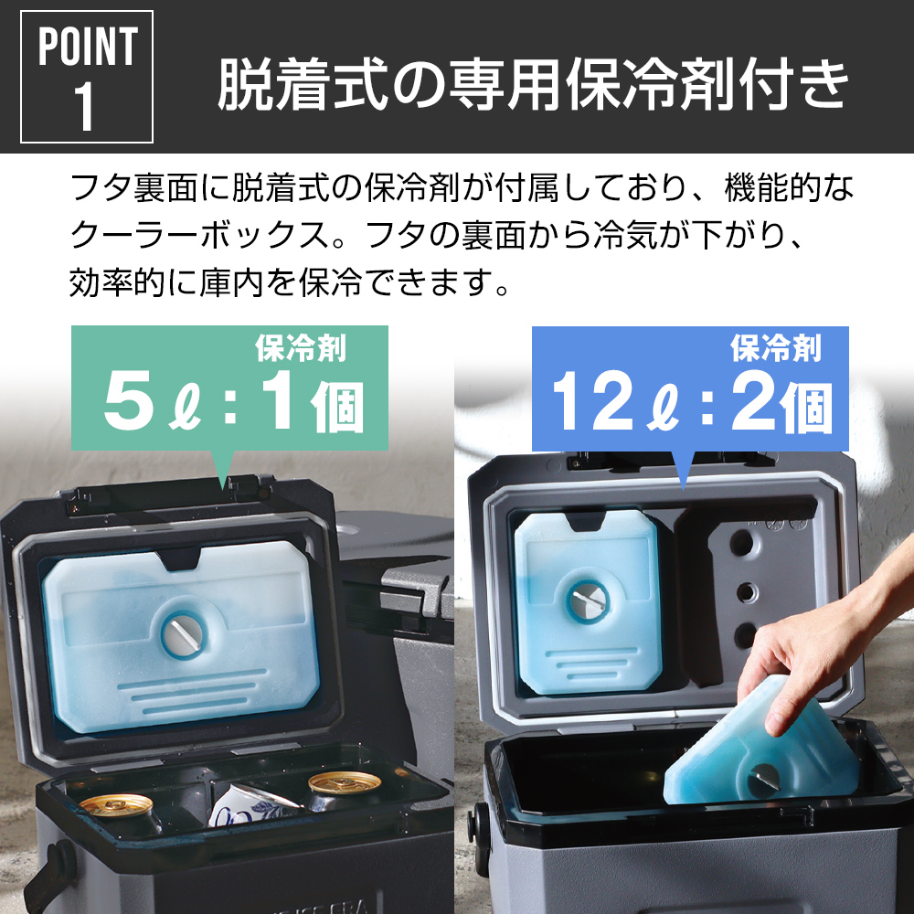 蓋裏面に取り外し可能な保冷剤が付属した機能性クーラーボックス。